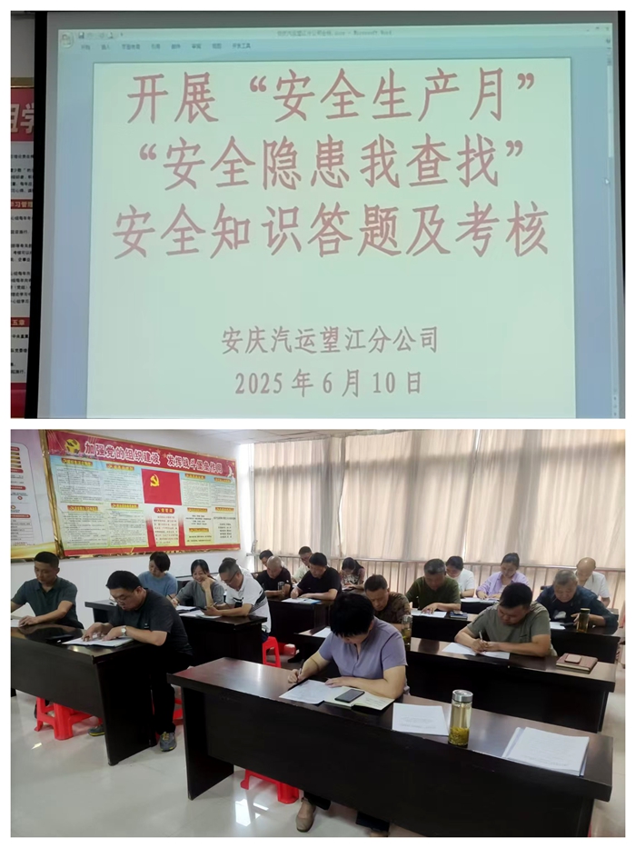 為積極響應(yīng)“人人講安全、個(gè)個(gè)會(huì)應(yīng)急——查找身邊安全隱患”的安全生產(chǎn)月主題號(hào)召,進(jìn)一步加強(qiáng)客運(yùn)企業(yè)安全管理工作,切實(shí)增強(qiáng)全體員工的安全意識(shí)與應(yīng)急處置能力,望江分公司于6月10日上午精心組織了一場(chǎng)全員參與的安全知識(shí)答題活動(dòng),旨在讓安全知識(shí)真正扎根于每位員工心中,并切實(shí)轉(zhuǎn)化為日常工作的實(shí)際行動(dòng)。